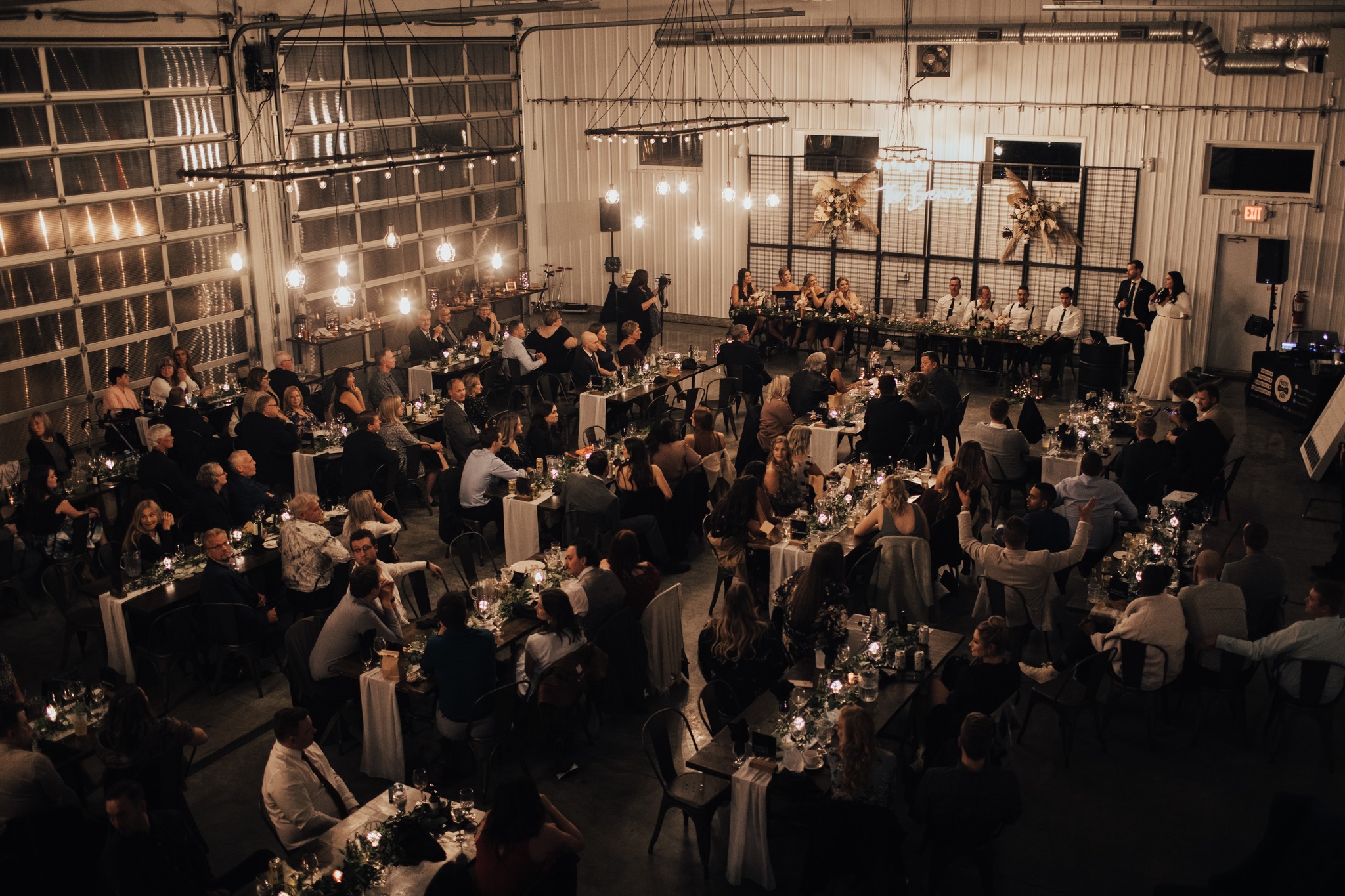 At 52 North Venue, we’ve created the perfect solution- a wedding destination just minutes from Sylvan Lake with intimate outdoor ceremony spots, an industrial-chic reception space, and convenient on-site accommodations.