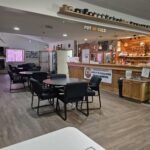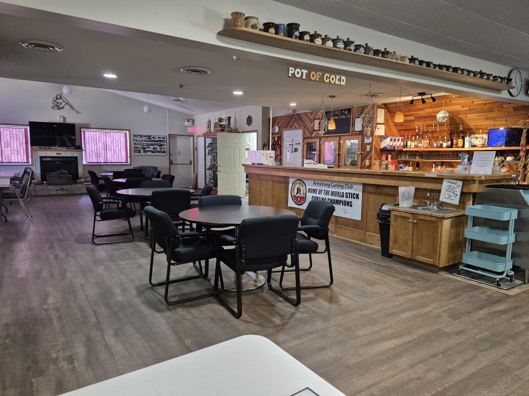 Our rink boasts three ice surfaces, a generously sized lower level consisting of commercial kitchen, restrooms and locker facilities. The upper level provides for a large viewing area equipped with real-time tv cameras at each end of the rink (so observers never miss a shot!) and the beautifully appointed bar services seating for 99 patrons.
