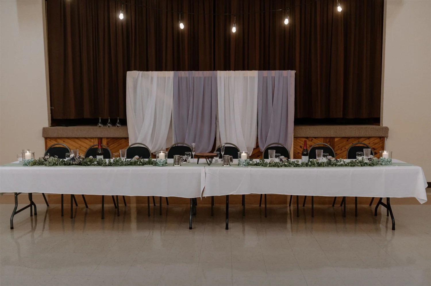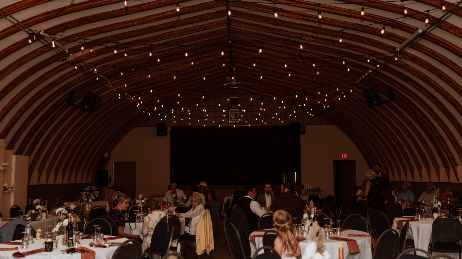 The main room of our hall is approximately 65x40ft. The hall has a kitchen, washrooms, bar/concession, stage, pull-down projection screen and sound system.