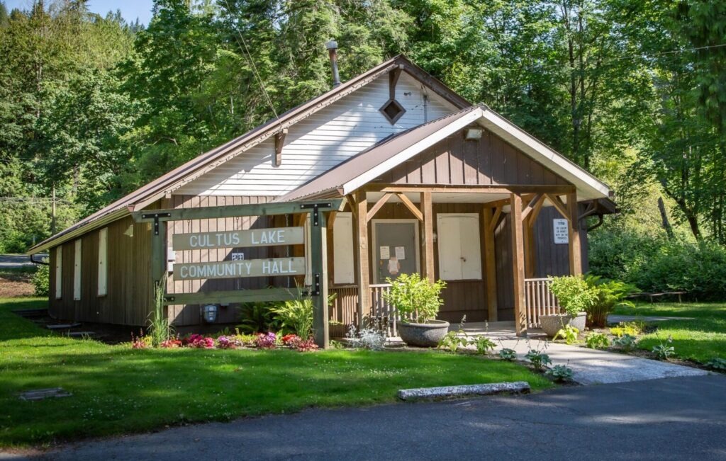 The Cultus Lake Community Hall is the perfect setting for a wedding, family reunion, meeting, conference, banquet, dance, gymnasium activities or other events. The Cultus Lake Community Hall can welcome up to 90 people and offers kitchen facilities, as well as tables and chairs.