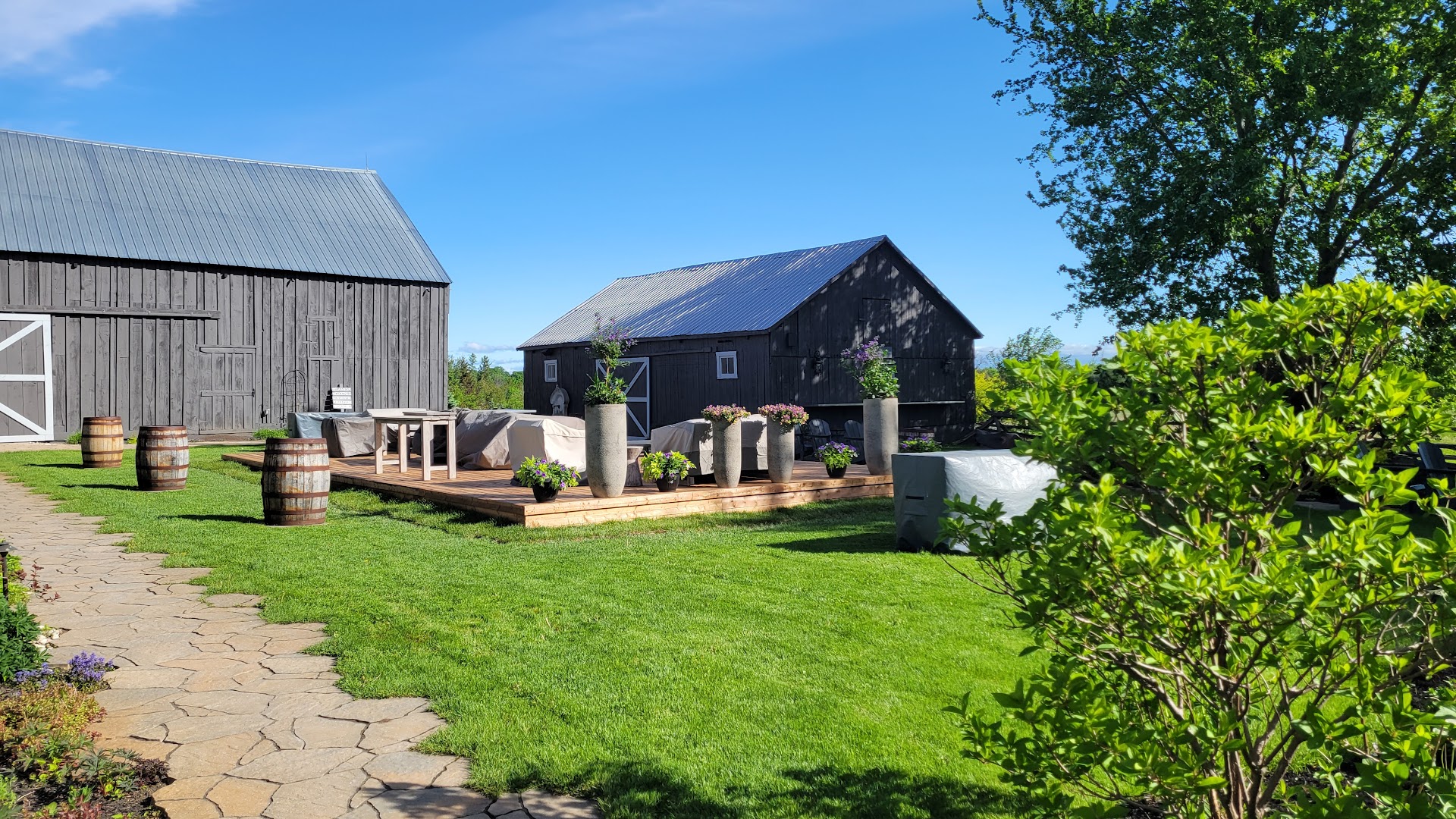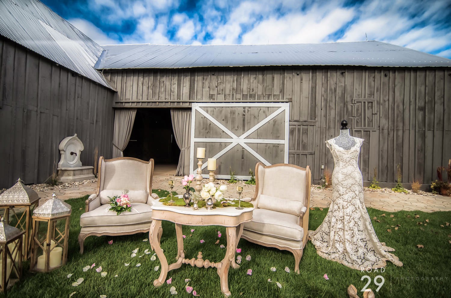 Featuring an 1870’s luxuriously restored barn overlooking 45 beautiful acres of rolling farmland and forest, Evermore is rustic elegance at its finest. You will enjoy lounging comfortably with your guests in the barnyard veranda, grand tent,