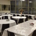 We have banquet style seating capacity for 200 people with a selection of tables and chairs to choose form.