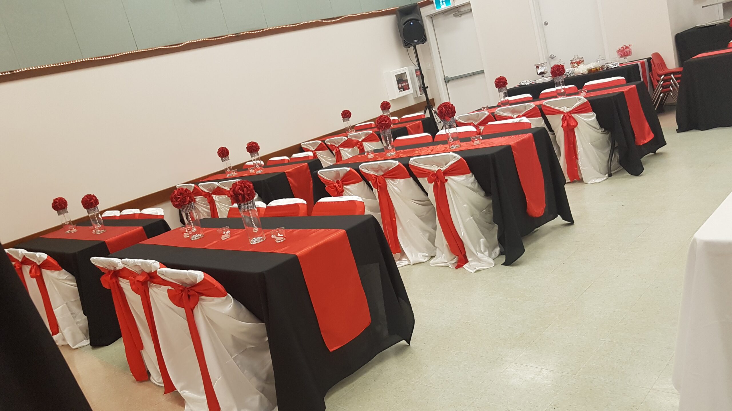 Some of the hall amenities include: The building is 2561 square feet and has a seating capacity of 100. Tile dance floor, stage, AV system with screen, projector, portable speaker and microphone, full kitchen with 2 electric ranges, commercial double door fridge, freezer, cooking and serving utensils, Commercial Jet-Tech hot water sanitizer/dishwasher.