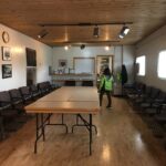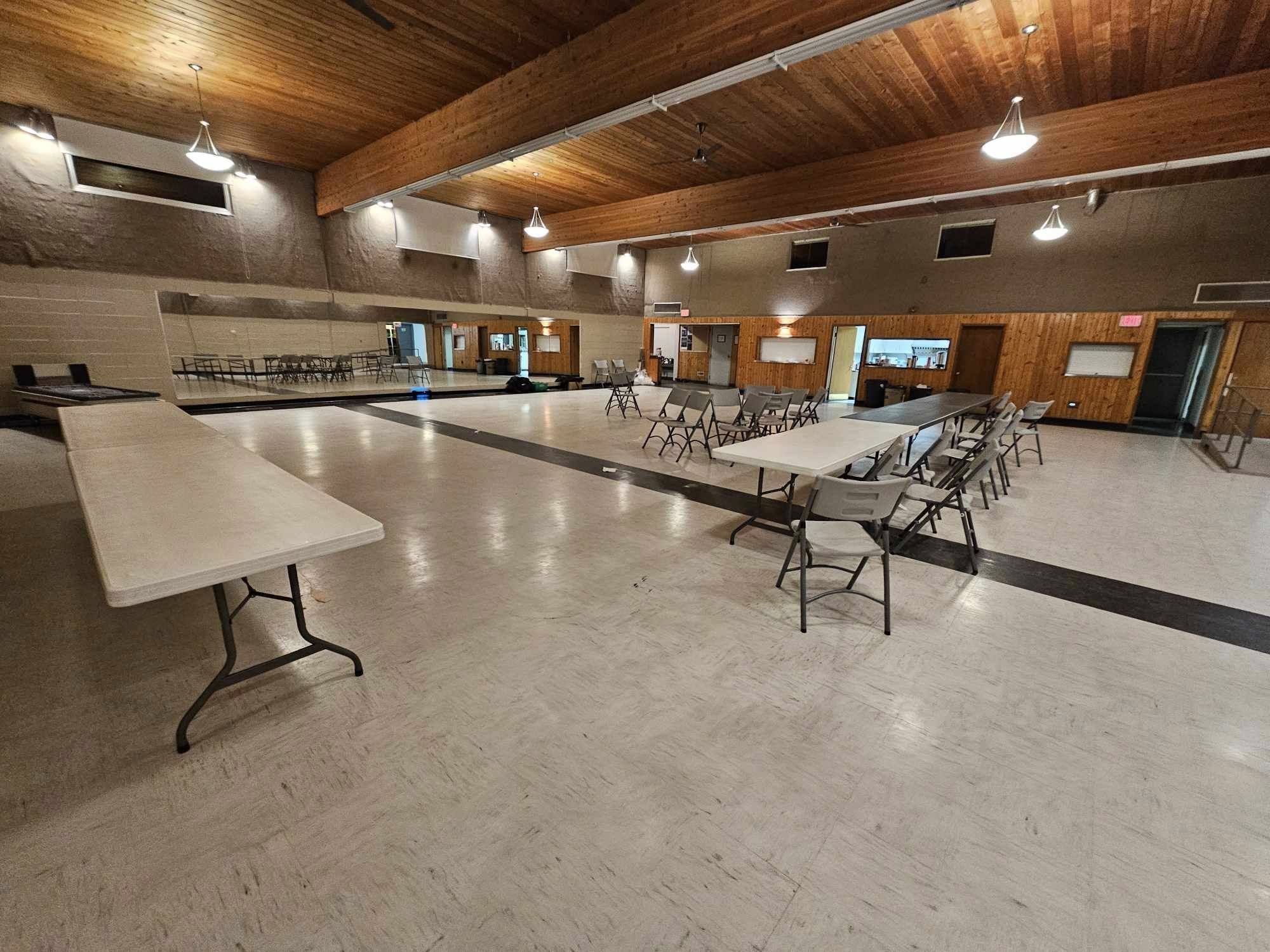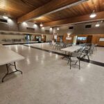 Available are enough tables (8′ x 2 1/2′) and folding chairs to accommodate approximately 180 to 220 persons depending on utilization