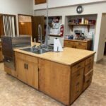 It is outfitted with a large kitchen that contains 2 ovens/stove tops, 2 large sinks, microwave, professional dishwasher, fridge/freezer, large refrigerated coolers, and a deep freezer.