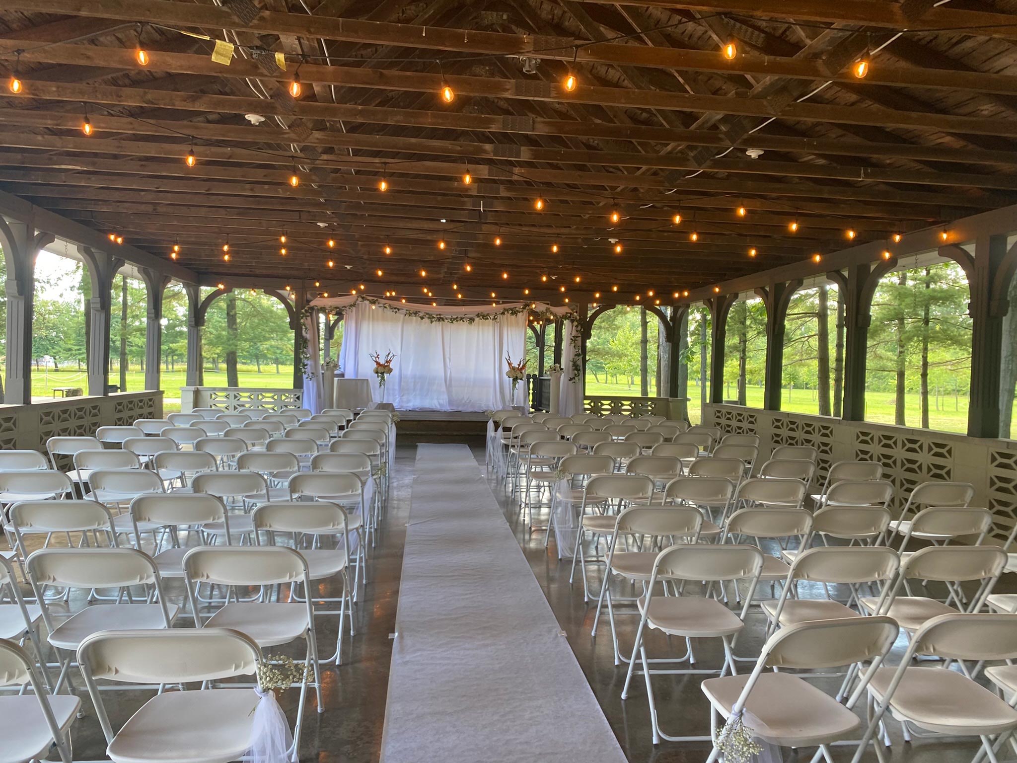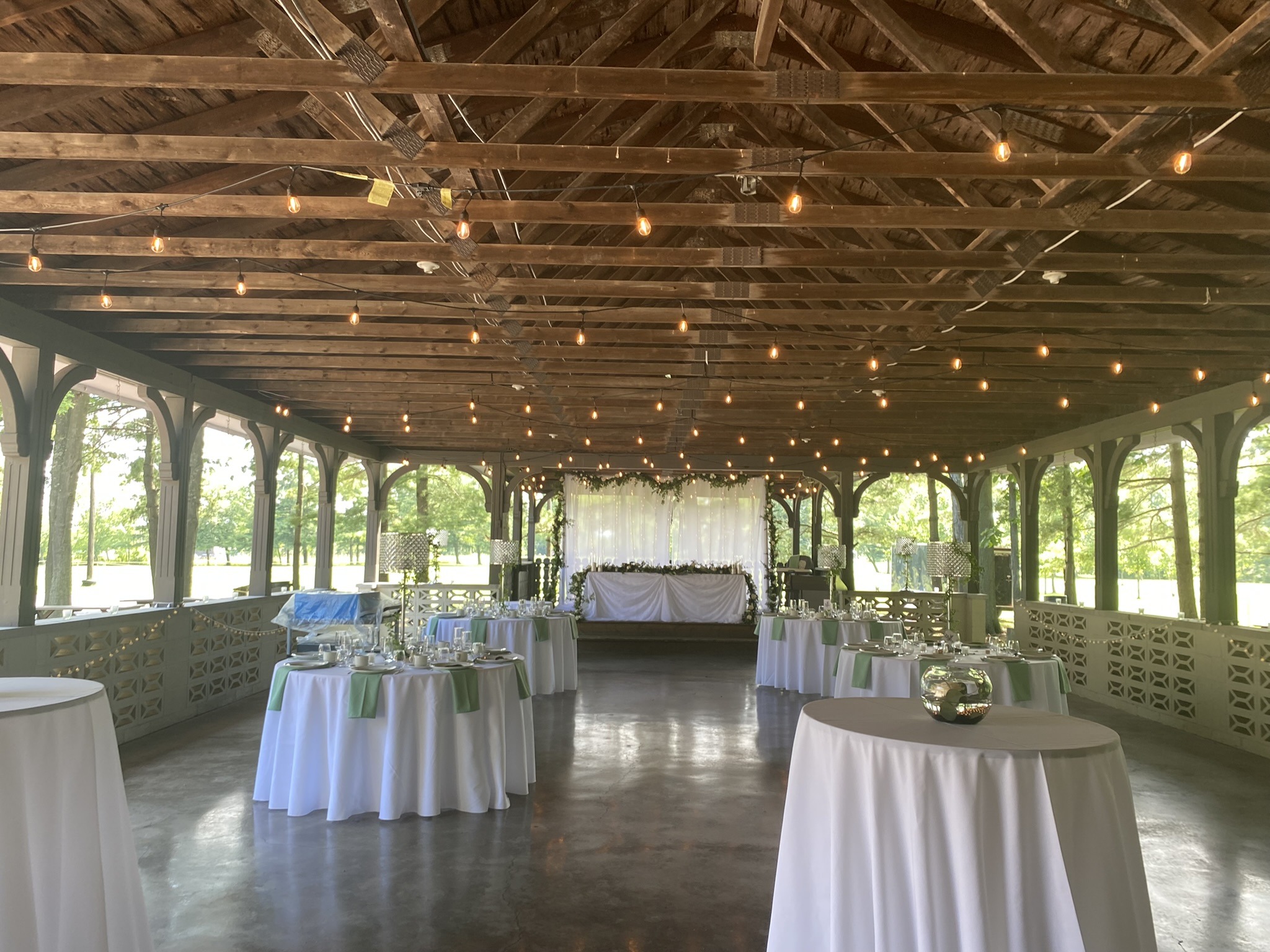 With its large wooded lot, beautiful pavilion and spacious hall, there are many possibilities. Work in your desired menu, beverages and entertainment, and you will really have something special happening. You can be assured that your guests will have a great time, rain or shine.