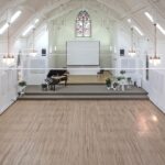 Stage with grand piano for live music.