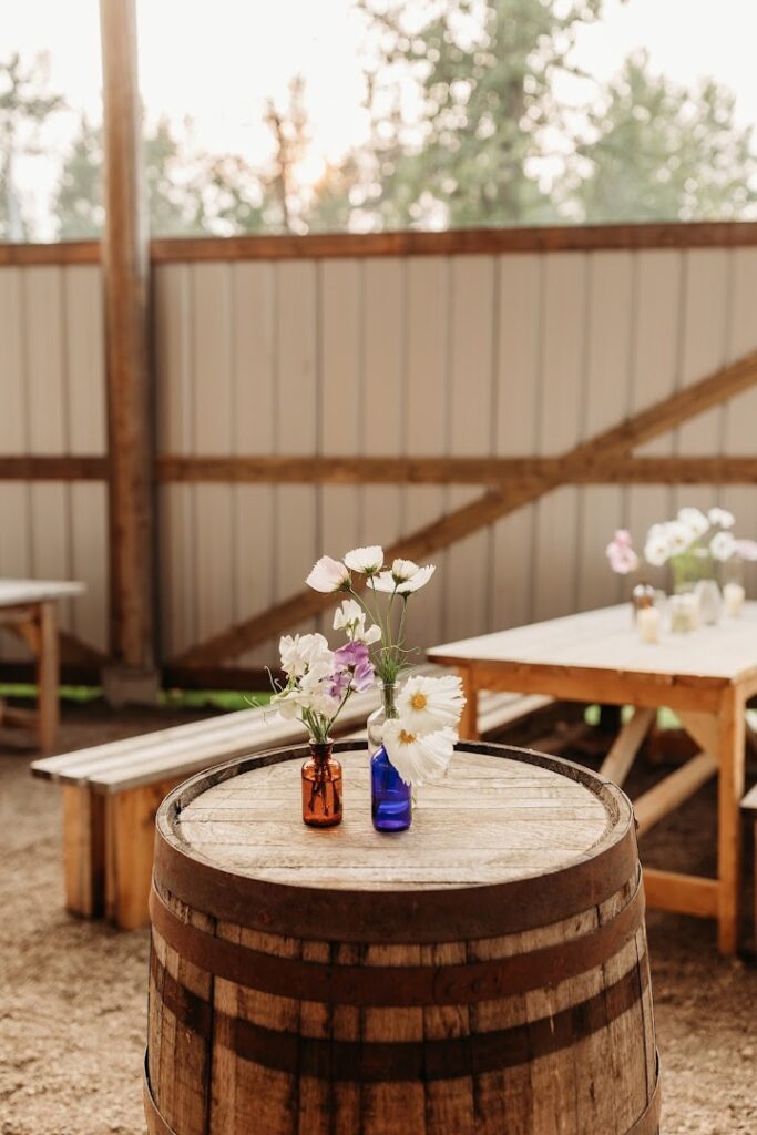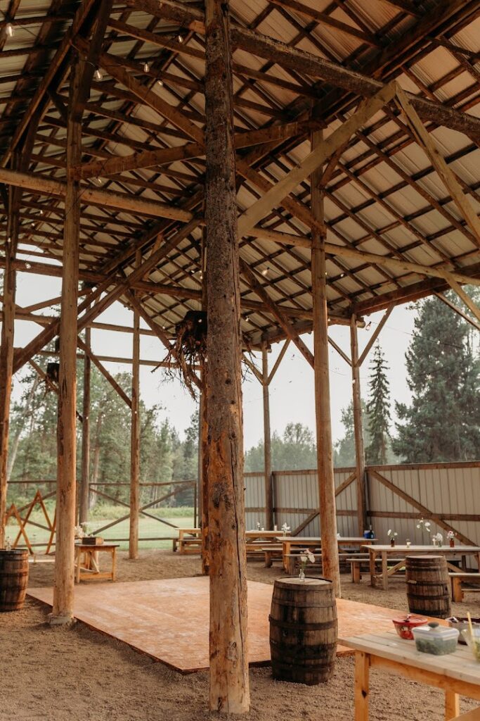 Our barn is the ideal setting for a quaint, yet stunning occasion. With ceremony seating for up to 100 or reception seating for 80. Nestled into a grove of giant cottonwoods and surrounded by rolling fields, our private venue boasts a large rustic pole barn and multiple ceremony locations, perfect for the wedding of your dreams.