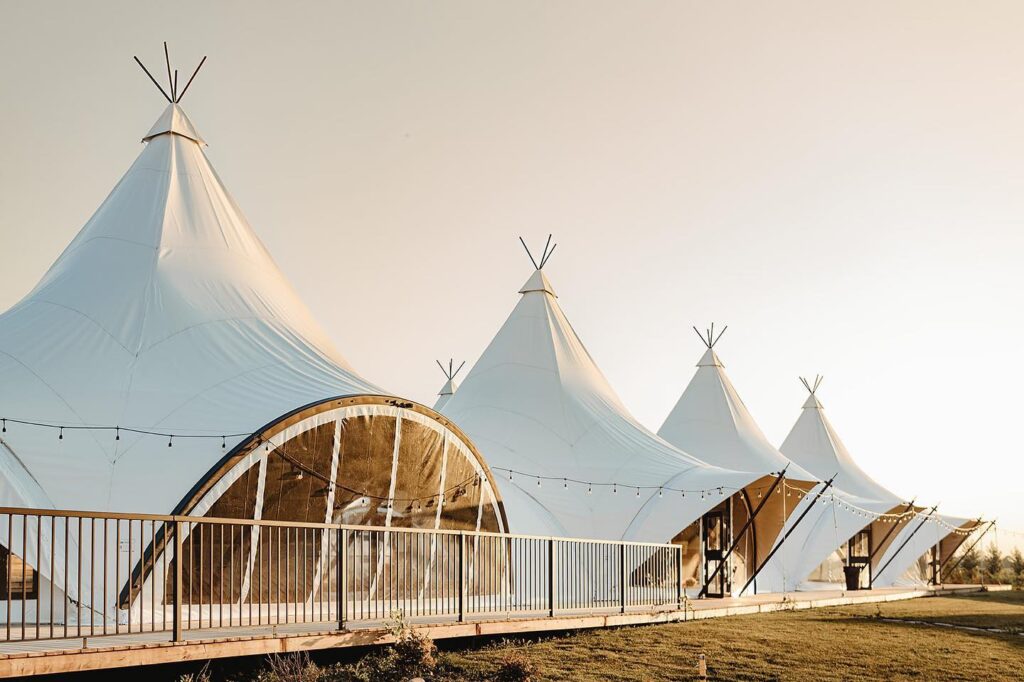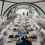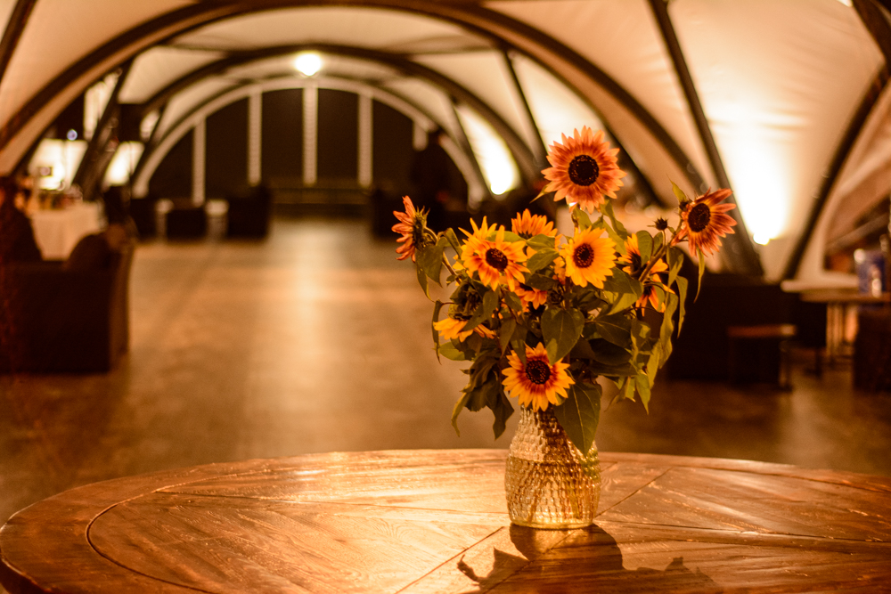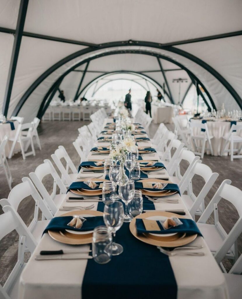 The Garden Venues’ beautiful indoor wedding hall, the Marquis tent, offers visual interest and endless decor possibilities. It combines the comfort of the indoors with windows to the natural beauty outside.